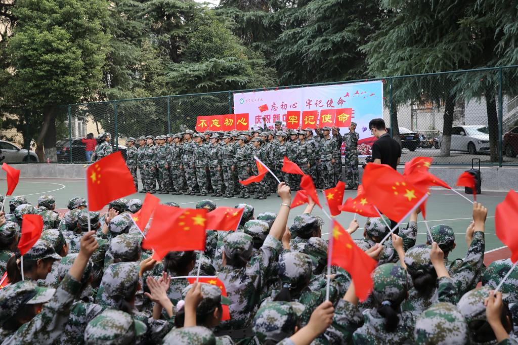 全体师生在樱花广场举办举办“不忘初心 牢记使命”庆祝新中国成立70周年爱国歌曲师生联合汇演。化院全体领导、教师和2019级新生参加汇演。
