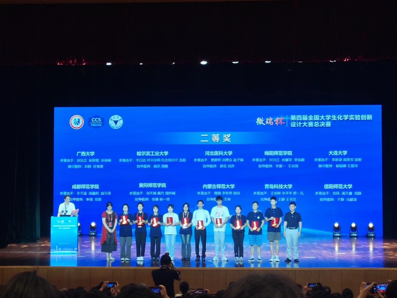 化学专业学生刘凤、满文鑫、周颖组成的参赛团队代表华中赛区参加全国总决赛,在马献涛、于静老师指导下,精彩展演,沉着应答,表现出色,最终获得全国二等奖。