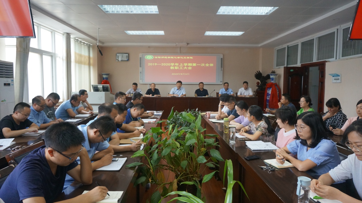 在学院会议室召开新学期全体教职工会议,安排部署新学期工作。党委书记郭鹏、院长井强山、副院长归风铁、骆定法、非金属材料研究所副所长刘鹏、党委副书记吴志伟出席会议,全体教师到会认真聆听新学期工作部署。会议由党委书记郭鹏主持。