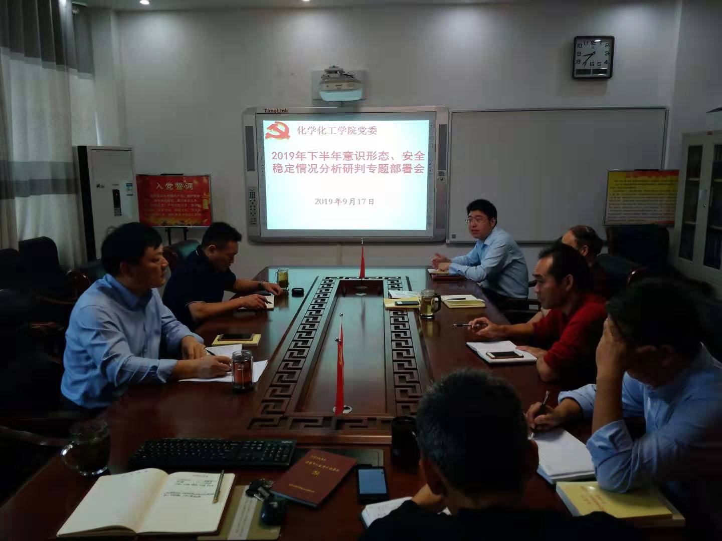 党委召开2019下半年意识形态及安全稳定分析研判专题会,专项分析、研判并落实学院师生全面意识形态及安全稳定工作。党委书记郭鹏再次领学了有关意识形态及安全稳定工作的讲话和文件精神。