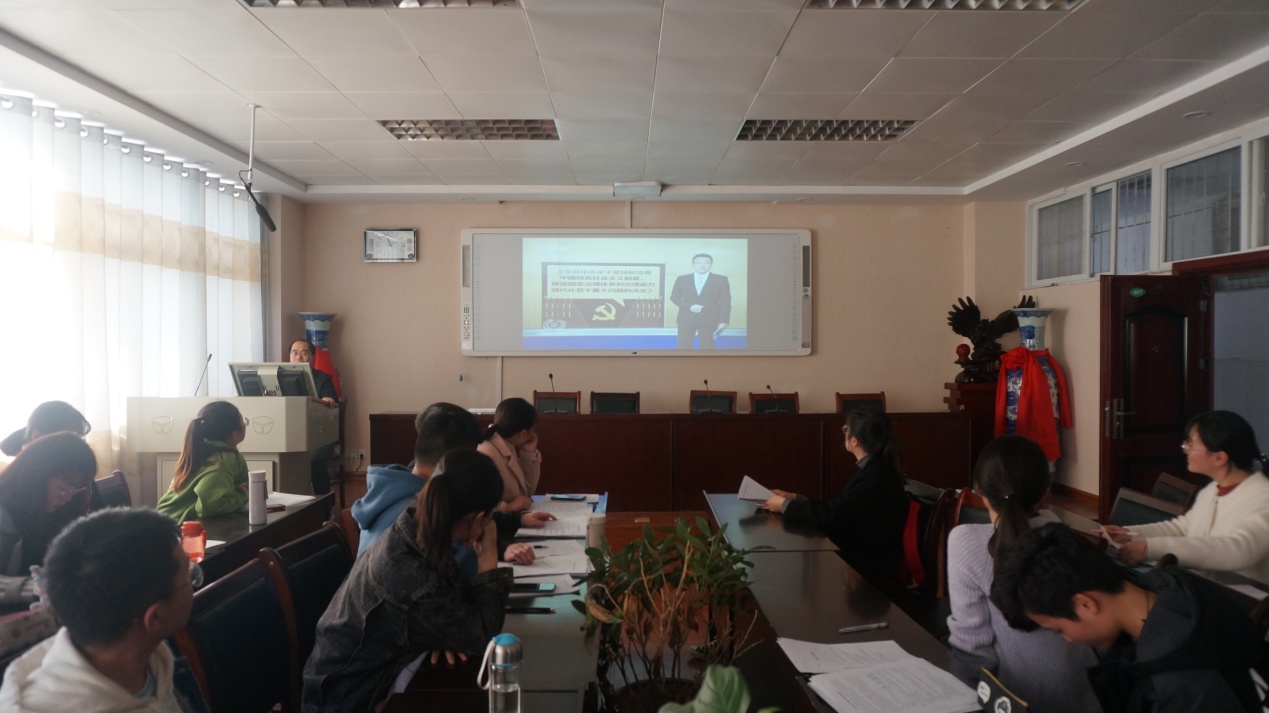 在实验楼407会议室开展集体观看十九届中央全会《决定》视频解读活动,学习十九届四中全会精神。全体学生党员参加。