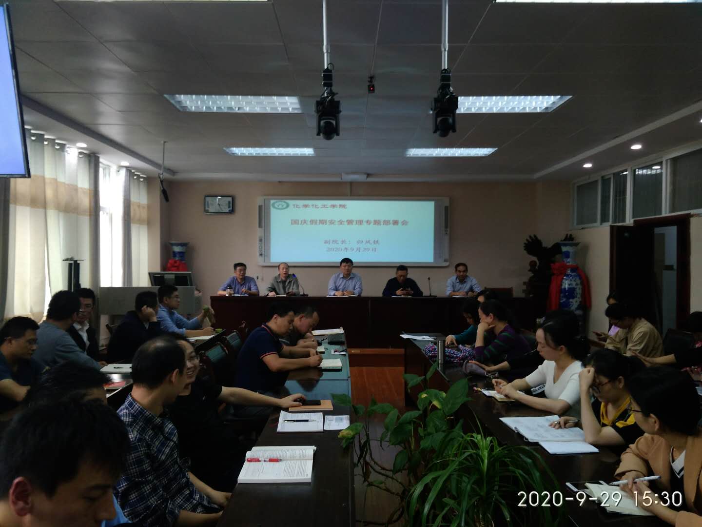 会上,分管领导归风铁副院长详细安排部署了国庆节期间安全稳定、实验室管理、应急值班、外出登记报备等具体工作。全体教师要时时处处关注安全管理,全体学生时时处处遵守安全规则,共同营造平安和谐喜庆的氛围,一时一刻也不能放松警惕意识,要确保各方面安全稳定,以优异成绩喜迎新中国成立71周年。(161sex