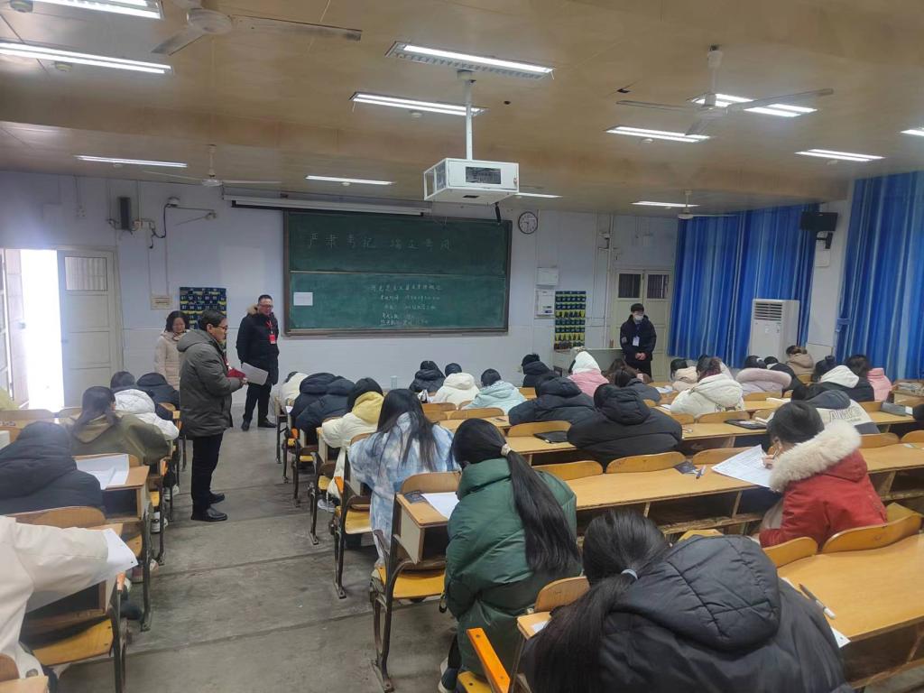 2023-2024学年第一学期期末考试全面展开,学院党政领导班子成员和教学秘书组成的巡视组深入考试现场进行全面巡视检查。