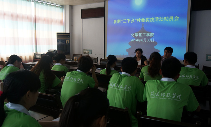 会上,宋书记首先向同学们传达了校团委关于暑期实践的指导意见,强调了暑期“三下乡”活动的目的、意义、发展情况以及注意事项,介绍了今年的实践活动将紧紧围绕“建功‘四个河南’,点亮青春梦想”这一主题,通过社会调查、慰问等形式的活动,结合本专业特色开展党的十八届三中全会精神、习近平总书记系列重要讲话精神和社会主义核心价值观宣传活动,推进文明河南建设,传播正能量。同时,宋书记希望广大学生能够发扬当代大学生勇于实践、乐于奉献、敢于创新,吃苦耐劳的精神,以饱满的激情、百倍的热情积极投身到暑期社会实践中去,用自己所学的专业知识和特长,开展好节能减排调研、企业科技研发等活动,在实践中努力拓展自身综合能力、增强对社会的关注、提高自身历史责任感和使命感。随后,路老师对活动中可能遇到的问题和困难,如宣传、安全、准备材料等进行了分析,为推进活动的顺利开展奠定了基础。