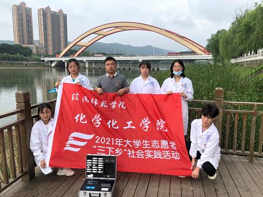 “三下乡”暑期社会实践团队在团委老师邓耀辉的带领下深入母亲河一浉河,实地开展了走访调查、水土检测、土壤检测、垃圾分类等社会实践活动。