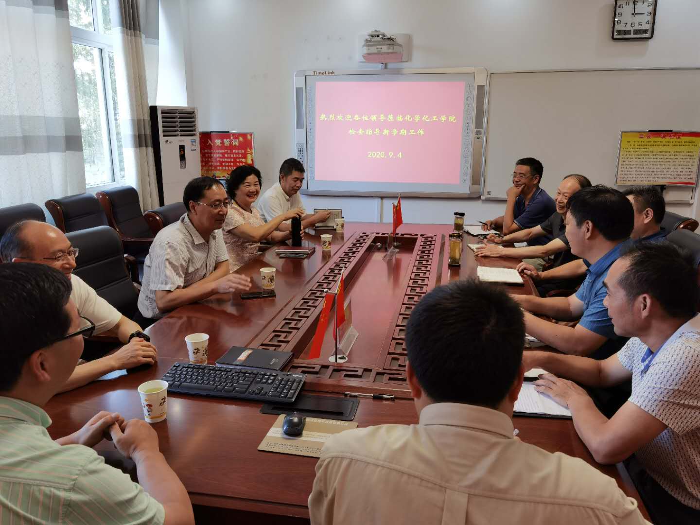 刘彦明、王金云等一行认真听取了学院党委书记郭鹏关于学院师生健康信息采集、假期师生安全状况和疫情防控方案、有序组织师生返校等方面近期疫情防控工作;院长井强山汇报了学院本科教育教学、学科专业建设、科学研究、人才招聘、研究生招生与培养等方面工作的汇报,就做好学生开学前教育教学、学生管理等各项准备,扎实做好一流专业一流课程建设、国家级自然科学基金项目申报、示范专业认证等有关工作情况作了简要汇报。