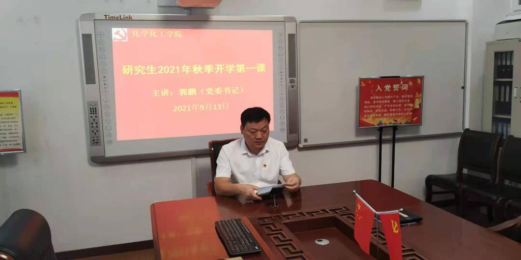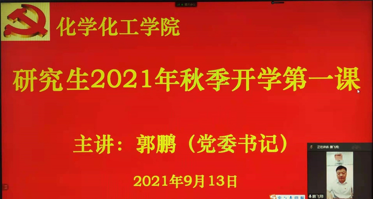 党委书记郭鹏通过网络腾讯视频为学院全体研究生认真讲授2021秋季“开学第一课”。研究生秘书马献涛博士主持“第一课”活动。