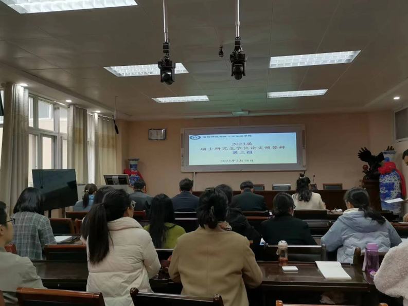 在化学楼407会议室举行2023届硕士研究生学位论文预答辩。根据研究方向,本次预答辩分3个小组进行,刘彦明、井强山、郭鹏、刘德汞、刘鹏、曹俊涛、王红军等导师代表作为答辩专家参加了本次预答辩汇报会。