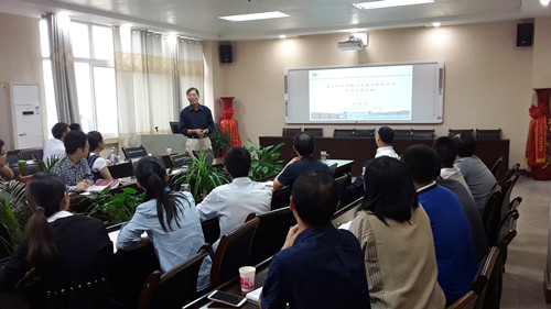 冶保献教授介绍了课题组近年来在基于脱氧核酶信号放大的电化学生物传感策略方面开展的系列研究工作。分别对靶标诱导形成DNAzyme和新型酶球用于超灵敏电化学检测microRNA、多肽改进的DNAzyme和PdNPs用于电化学适配体传感器、多肽修饰凝血酶适体和PtNTs@rGO用于电化学凝血酶适体传感器等研究成果进行了深入的讲解。