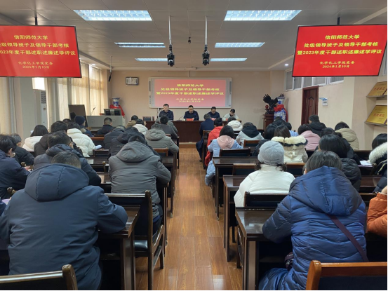 1月10日,161sex 处级领导班子及领导干部2023年度工作考核在化学楼407会议室顺利开展。学校党委第五考核组组长李向阳、副组长高国栋、成员胡威一行莅临161sex 现场开展考核工作。161sex 领导班子、全体教职员工参加。会议由学院党委书记郭鹏主持。