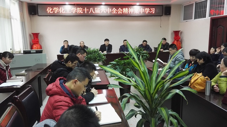 在化学实验楼会议室召开专题会议,学习传达了十八届六中全会精神并部署了相关工作。党委书记郭鹏主持会议,化院教职工80余人参加了会议。