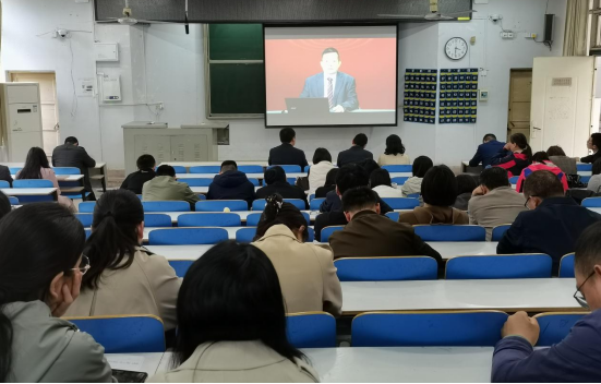 全体党员在教四T1集中学习中央党校政治和法律教研部教授、博士生导师任进对《条例》内容解读的专题视频。