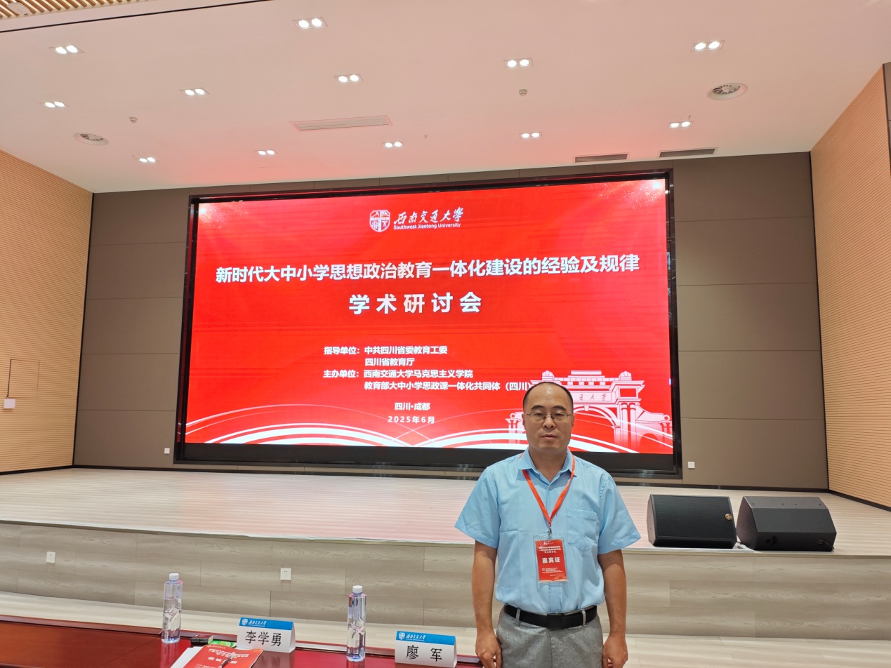 2025年6月14日,“新时代大中小学思想政治教育一体化建设的经验及规律”学术研讨会在西南交通大学犀浦校区双一流会议中心隆重举行。161sex 辅导员冷向宇博士向大会提交了论文《大别山红色文化资源助力思政课一体化建设探赜》,被会议论文集收录,并在学术论坛进行交流。
