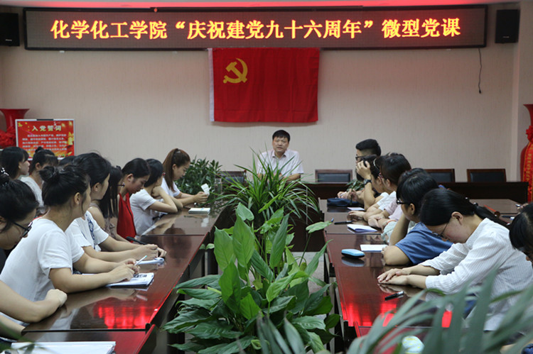 党委书记郭鹏以“社会主义核心价值观的科学内涵”为题,在化学楼407会议室为三十余名新发展学生党员做报告,报告由党委秘书冷向宇主持。
