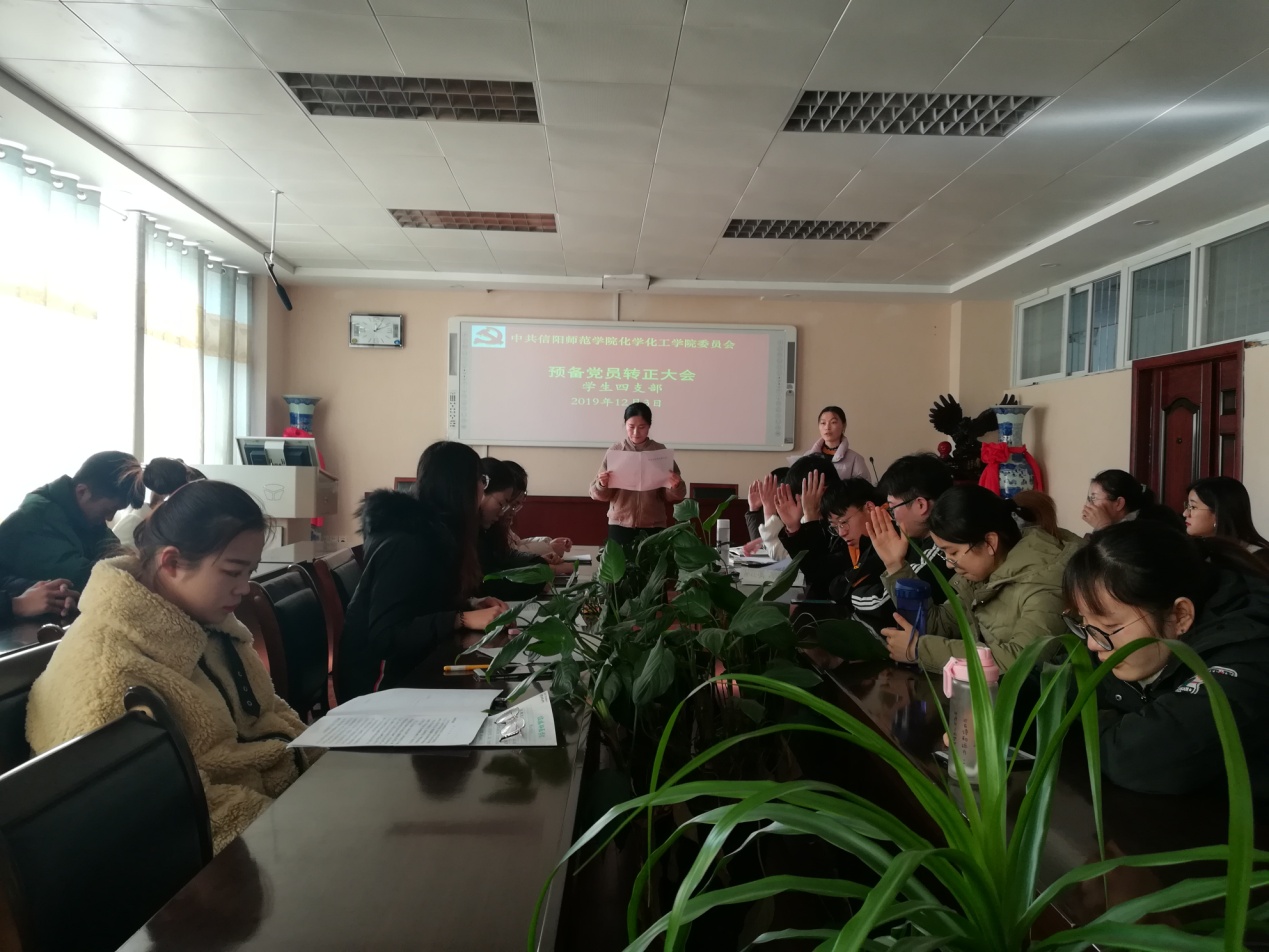 学生第四支部在实验楼407会议室召开预备党员转正大会,学生第四支部6名正式党员和25名预备党员参加本次大会,其中有6名预备党员转为正式党员。