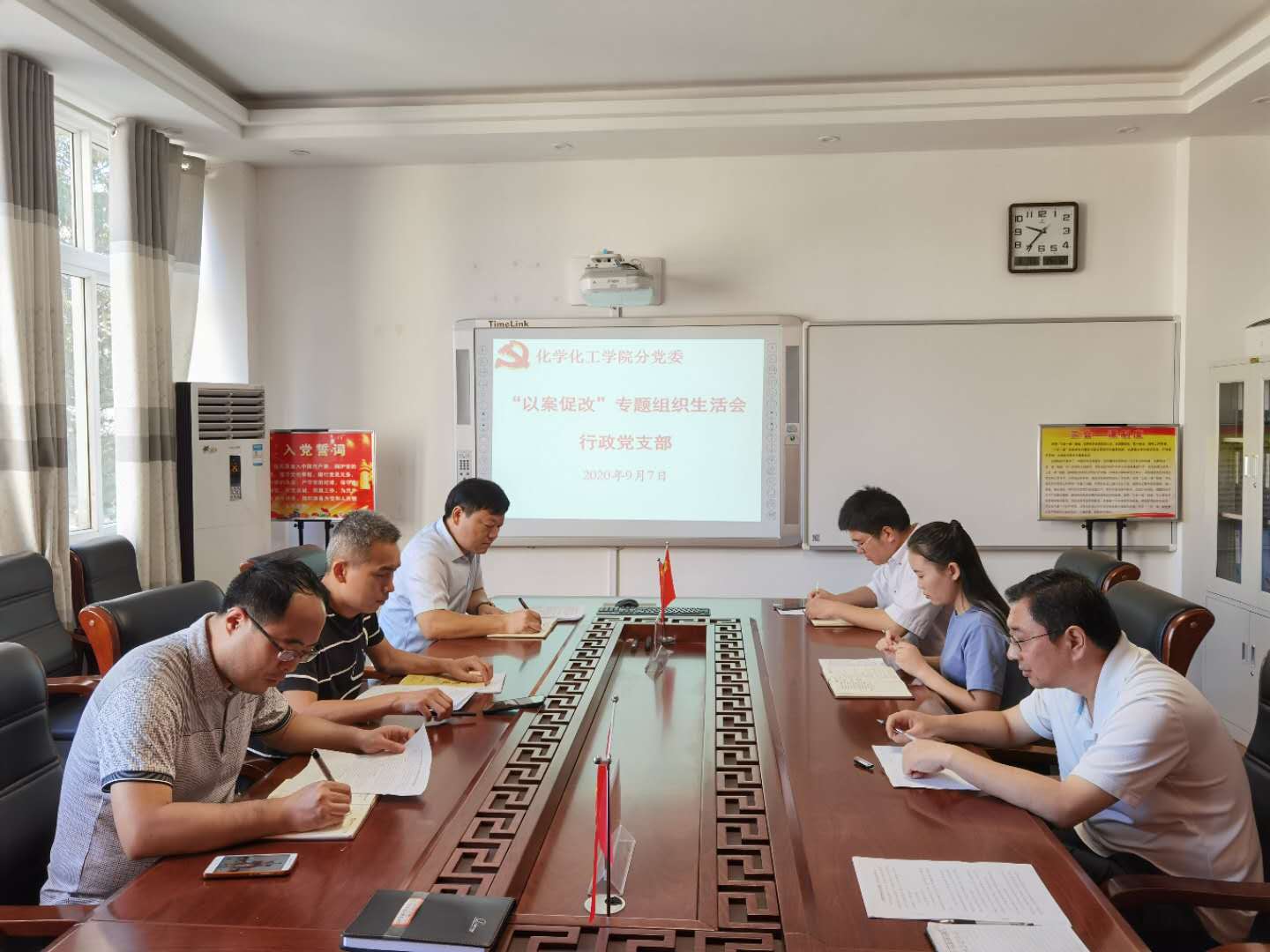 97日上午,行政党支部在“党员之家”专门召开以案促改专题组织生活会,学院党委书记郭鹏以普通党员身份参加所在支部专题组织生活会,并认真总结点评指导支部活动。行政党支部全体党员参加了活动,会议由党支部书记孙俊永主持。