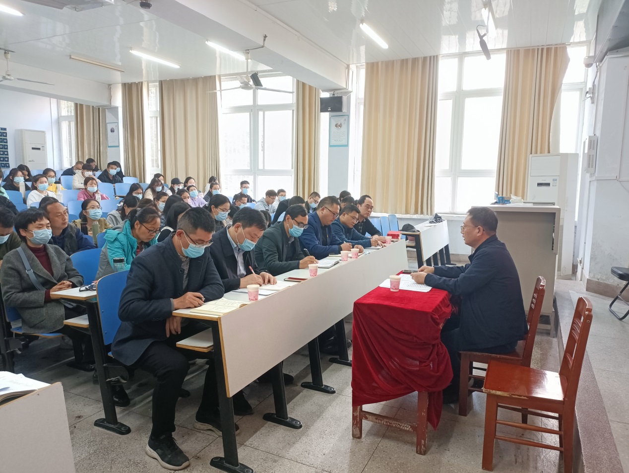 报告会上,唐国战教授作题为《深刻领会党的二十大会议精神,坚决落实立德树人根本任务》的辅导报告。报告紧扣党的二十大主题,紧密联系党中央重大决策部署和我国经济社会发展实际,从“深刻领会认识学习党的二十大精神的重大意义、深刻领会把握党的二十大报告鲜明的主题主线、深刻领会把握过去五年工作和新时代十年伟大变革、深刻领会认识开辟马克思主义中国化时代化新境界、深刻领会理解新时代新征程中国共产党的使命任务、深刻领会把握全面建设社会主义现代化国家的战略部署、深刻领会理解坚定不移全面从严治党重大部署、落实立德树人根本任务奋力谱写新征程上信阳师范学院高质量发展绚丽新篇章”等八个方面展开深入阐述,主题鲜明、内容详实、视野开阔、重点突出。