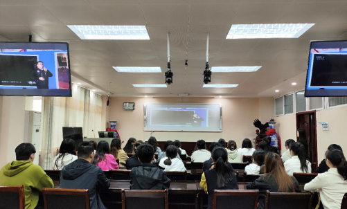 在化学楼407组织学生集中观看学习“思想的力量”宣讲会,团委书记赵方方、部分学生代表共同参与。
