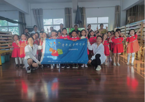 此次活动共由三部分组成,分别为气泡系列、喷泉系列、变色魔术系列,在青年化学研习社老师及社员的带领下,给小朋友们带来了“鸡蛋跳舞”、“蓝海沉浮”、“冰淇淋火山喷发”、“可乐喷泉”、“无字天书”、“紫甘蓝变色魔术”、“棒棒糖变色魔法”等有趣的化学实验。通过一系列精彩的化学反应展示,激发了小朋友们动手实验的兴趣,引发了他们对科学的好奇心,并纷纷表示想要主动参与活动开展过程中,小朋友们先后上台尝试在体验化学实验的同时,充分感受到化学的魅力。最后,大家在欢声笑语中进行合影留念。