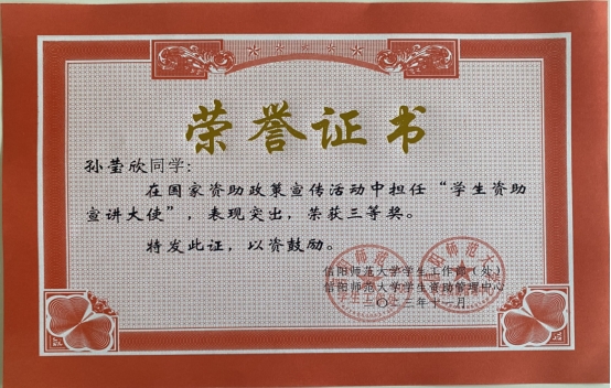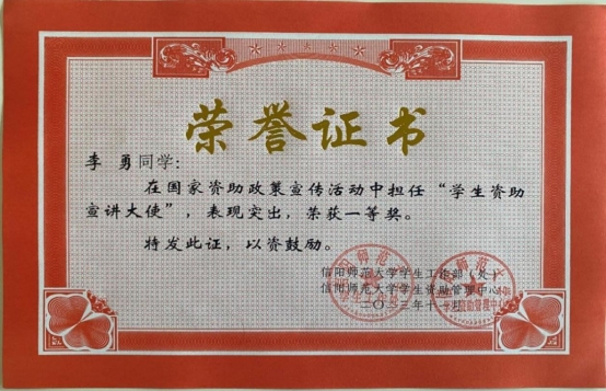 资助管理中心研究决定,授予2021级化学2班李勇同学为一等奖,2021级3班常畅同学为二等奖,2021级化学1班孙莹欣同学为三等奖。
