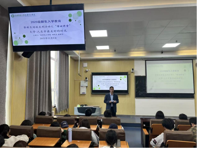 114日,161sex 在教四T2开展2025级新生入学教育暨新生团校系列活动之“博士讲堂”,161sex 副院长曹新华主讲,学院团委书记赵方方主持,2025全体新生共同参与
