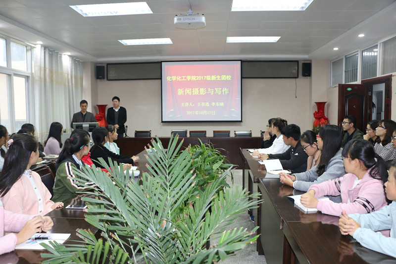 2017级新生团课计划第四讲在化学实验楼407开讲,校党委宣传部王存选、李东晓应邀为该院作了题为“新闻摄影与写作”的报告,部分班级、学生干部参加了讲座,讲座由该院党委副书记吴志伟主持。