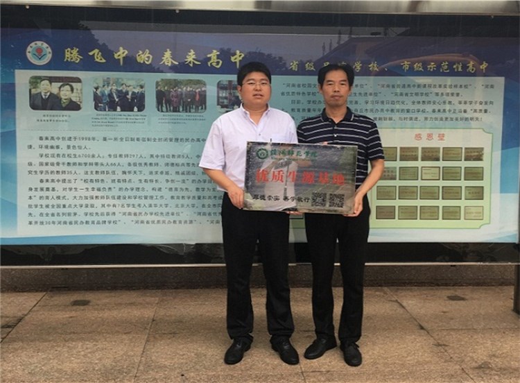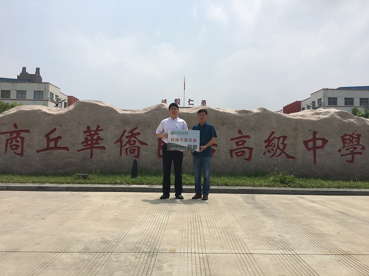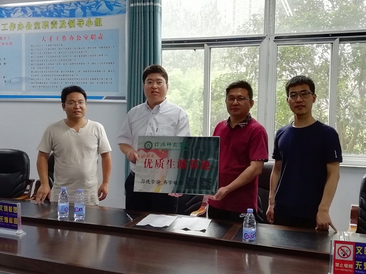 7月3日至5日,学院党委副书记吴志伟一行3人赴商丘4县(区)开展2018年招生宣传工作。吴志伟一行先后到永城高中、虞城春来高中、商丘市二高、柘城高中开展招生宣传工作,吴志伟分别与4所高中负责人和教师进行座谈,详细介绍了信阳师范学院和161sex 的基本情况与招生政策。座谈会后,吴志伟分别与4所高中负责人签订了优秀生源基地协议,并代表学校授予高中优质生源基地牌匾。吴志伟一行还看望了永城高中的部分校友,并与校友进行了座谈。