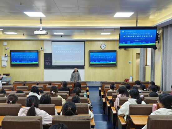 活动伊始,万好同学首先为在场学弟学妹们带来了一节优秀的示范课,身体力行的讲述大赛细节及要求,让同学们更加直观地认识到教师职业技能竞赛流程。随后,在谈及技能竞赛的准备技巧时,她为同学们详细讲解了教学设计的要点,如怎样精准把握教学目标、怎样巧妙设计教学环节以吸引学生注意力与怎样合理安排教学时间等。此外,对于教学演示环节,她着重建议同学们要注重教态自然、语言生动且富有感染力,并且要熟练掌握多媒体等教学辅助工具的运用,注意自己的课堂表现力以及课堂流畅衔接等问题。