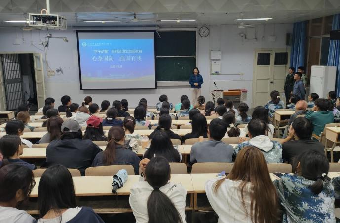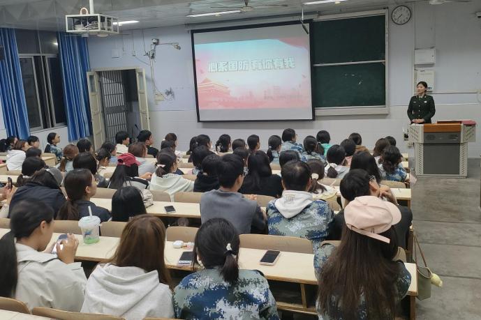 为深入学习贯彻习近平新时代中国特色社会主义思想,进一步强化大学生国防观念,激发青年学子的爱国情怀和使命担当,落实“五训联动 五育并举”的活动要求9月23日,161sex 在教六101开展“学子讲堂”系列活动之“心系国防 强国有我”国防教育宣讲会。学院党员副书记曲剧,辅导员严赫及全体新生共同参加。