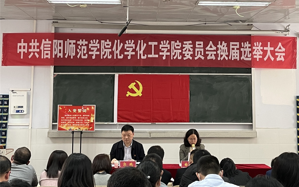 郭鹏同志代表上一届党委向大会作工作报告。报告从“党委政治功能进一步增强、组织建设水平进一步提升、主题教育活动进一步深化、学院事业发展进一步推动”等方面回顾了2017年3月学院党委换届以来的主要工作,客观总结了工作中的经验体会,实事求是地分析了工作中存在的难题;并从“深化教育教学改革,全面提高人才培养质量;强化学科专业建设,加快推进学院内涵发展;坚持人才强院战略,着力筑牢学院发展基石;实施创新驱动战略,切实增强科学研究实力;完善各项制度建设,不断提升学院治理效能;落实全面从严治党,夯实学院发展政治保证”等方面提出了今后五年学院发展的规划建议,构思了未来五年工作思路,展望了2026年发展愿景。报告还号召全院党员师生凝心聚力,真抓实干,改革创新,勇毅前行,动员全体同志喊响叫亮“化学化工,勇攀高峰!化学化工,争创先锋!”的响亮口号,团结一心,克难攻坚,奋力拼搏,在博士授权单位核心指标建设任务落实方面率先圆满完成,在化学博士授权支撑学科建设成效方面争当先锋争做排头兵,为学校高水平师范大学建设作出新的更大贡献。