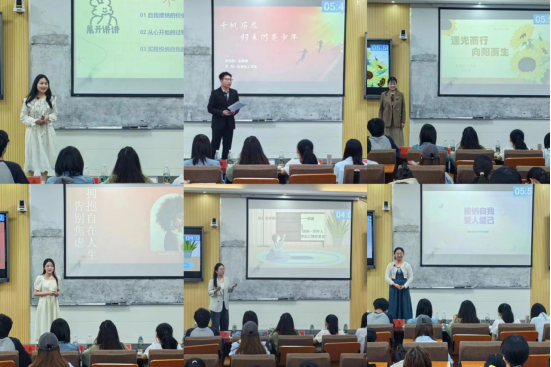 等十余个院系的24名参赛选手向观众们呈现了一场精彩绝伦的演讲盛宴。选手们围绕自我,重温心路历程,感受成长过程,批驳消极的人生观念,呼吁积极的生活态度,“拥抱真实的自我”、“告别精神内耗”、“逐光而行”、“在平凡中绽放”等清晰新颖的演讲主题,展示了参赛选手们乐观向上、自尊自信、理性平和的心理健康状态。