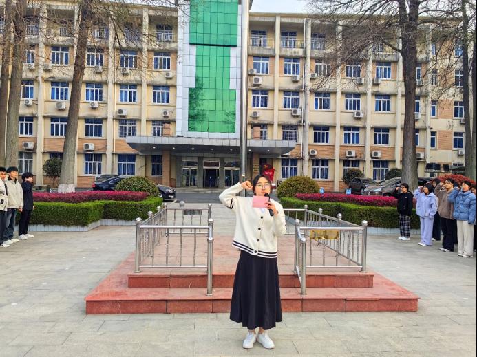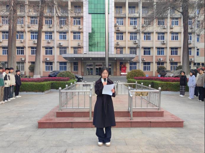 学院党委副书记曲剧在国旗下发表讲话,强调青年学生正是绘就教育强国梦的主力军,应以教育强国为己任,在民族复兴征程上书写青春华章。一是要勇于担当,学深悟透党的创新理论,坚定理想信念,把自己塑造成为担当民族复兴大任的时代新人;二是要沉心钻研,在课堂中汲取智慧,在实验室里探索真理,以扎实学识和创新精神筑牢自己的发展根基;三是要服务社会,走进乡村支教、投身社区科普、传播先进文化,用脚步丈量祖国大地,用知识赋能社会发展。2024级陈红作为学生代表发言,她倡导同学们要以信仰和行动铸就无悔青春。最后,2024级刘盛丹作为学生代表带领全体同学在国旗下进行庄严宣誓。