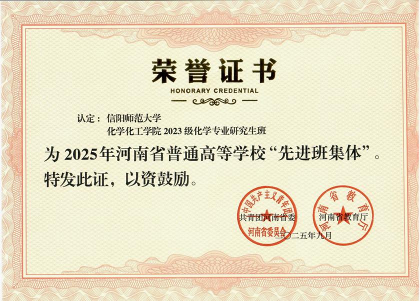 2023级化学专业研究生班凭借出色的综合表现,从众多参评单位中脱颖而出,荣获这一省级荣誉称号。
