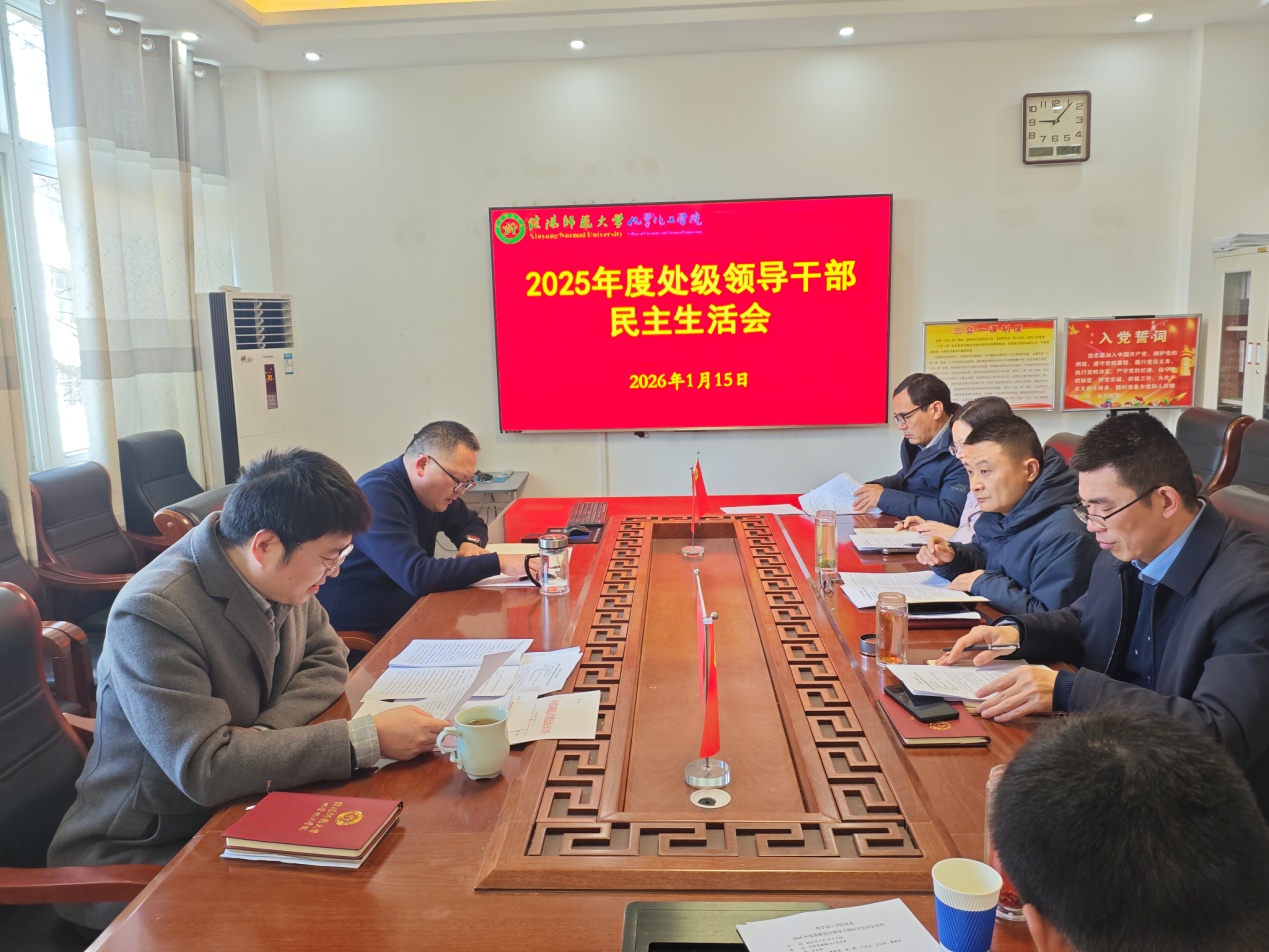 2026年1月15日,161sex 在化学实验楼313会议室召开2025年度处级党员领导干部民主生活会。161sex 全体处级干部参加民主生活会,学校第一督导组孙太红同志列席会议,会议由学院党委书记吴志伟主持。