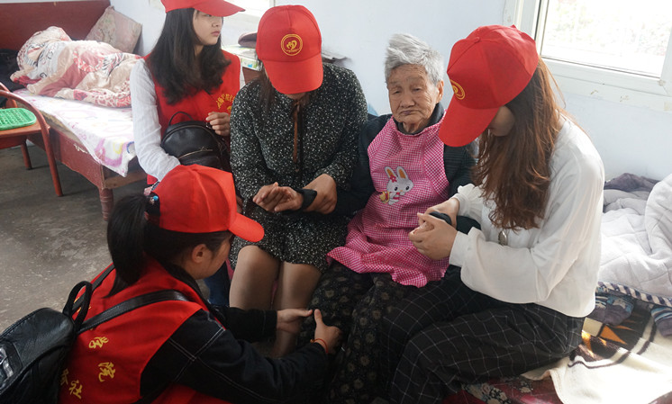 刚踏进敬老院,老人们就对这支熟悉的队伍绽开了亲切的笑容。信阳爱心老年公寓共居住了30多位老人,大多到了耄耋之年,更有很多行动不便、长期卧床、需要专人照顾的老人。同学们的到来给他们带来了欢乐和温暖。同学们主动和老人们拉家常,询问他们的健康状况,播放他们喜欢的戏曲、歌曲,一起吟唱他们熟悉的老歌。老人们敞开心扉,拉着同学们的手,给大家将过去的故事娓娓道来。约3个小时后,活动圆满结束。