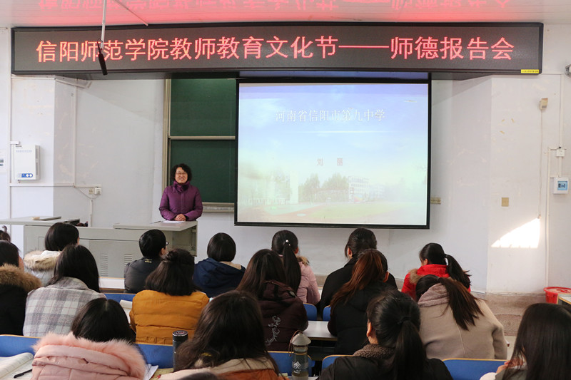 在化学楼学术报告厅举办2017年教师教育文化节之师德报告会,信阳市第九中学业务副校长刘丽应邀为化院学子做了一场题为“实施德性爱心教育 创建全国文明校园”的报告。161sex