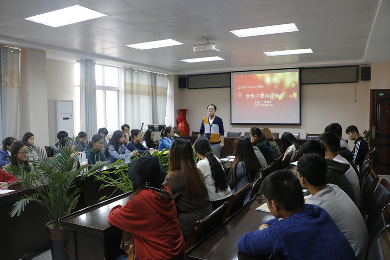 10月21日,161sex 党委秘书冷向宇在化学实验楼407会议室为学生干部上了一次生动的团课,化院九十余名学生干部参加了此次活动。
