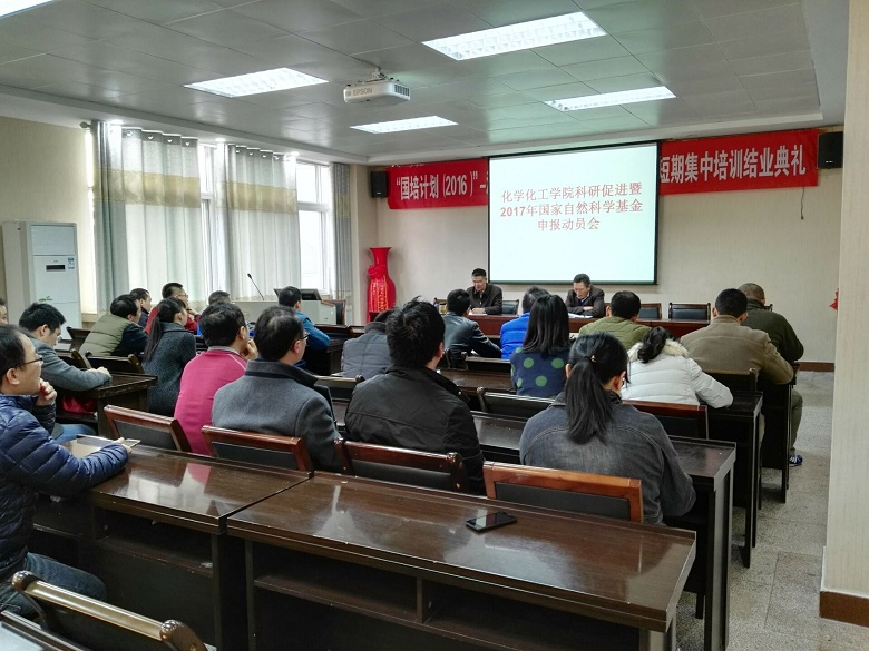在化学实验楼417会议室召开科研促进暨2017年国家自然科学基金申报动员会。全院博士及符合申报条件的教师参加了会议,会议由非金属材料研究所副所长刘鹏教授主持。