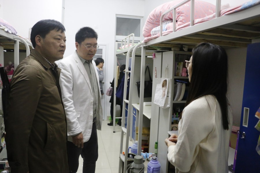 党委书记郭鹏,副书记吴志伟,班主任刘雪、许春萱、孙俊永、王红军、路振国、冷向宇和王丽霞深入宿舍看望学生,与学生真切交流。