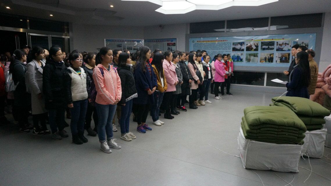 党委书记郭鹏、副院长归风铁、副书记吴志伟、团委书记冷向宇和辅导员老师王丽霞参与了此次活动。除了学校资助的92床棉被外,161sex