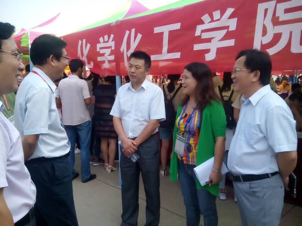 迎新工作人员便早早的到达指定地点。充分做好迎新准备。备档案、登记报名……她们面带微笑,认真严谨,热情地接待每位新同学,耐心地解答新生的疑问,充分展现了“厚德崇实,善学敏行”的校训精神。化院领导老师后台坐镇,全程指导学生并亲自参与迎新工作,亲切的与新生家长进行交流,对新生的情况进行深入了解。烈日当头,丝毫没有减弱同学们喜迎学弟学妹的热情。