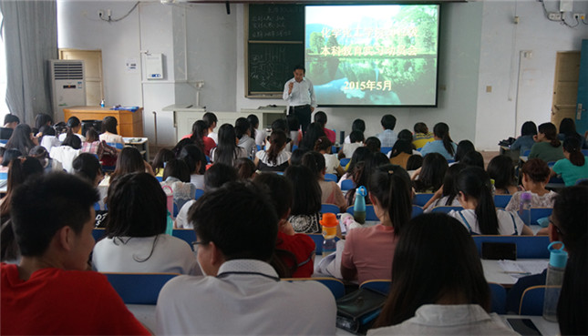 在教四梯一举行了2012级实习生动员大会。本次大会由化院副院长骆定法担任主讲,出席本次大会的还有化院副院长归风铁, 2012级预备实习学生共180余人共同聆听了此次动员。