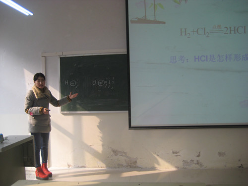 书记周涛和副院长骆定法应邀参加。活动共分为两个环节,首先是师范生的课堂教学技能展示,2011级化学专业秦纪尧、杨晴晴同学分别讲授了“摩尔”、“化学键”内容,两位同学在课堂上娓娓道来,给同学们带进了一个神奇的微观世界。随后马豪老师作了精彩点评,周书记和骆院长也给以补充并提出自己的看法建议,课后,同学们进行了深入地探讨交流,一致认为获益匪浅,活动拓宽了知识面,提高了师范技能。