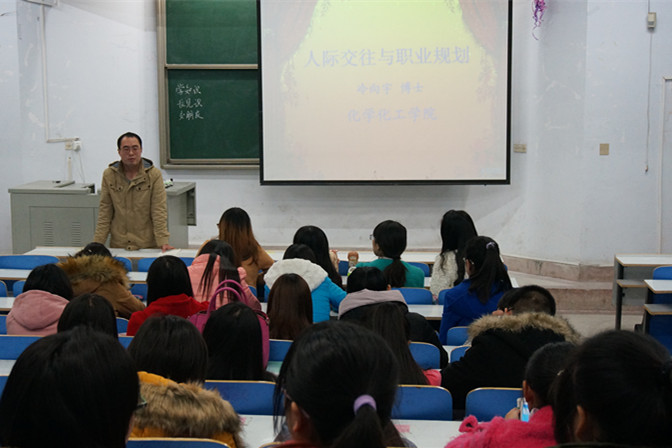 团总支书记冷向宇主讲的“人际交往与职业规划”座谈会在教四梯一准时开始。整场讲座和着冬韵的节拍,自始至终洋溢着活跃的气氛。