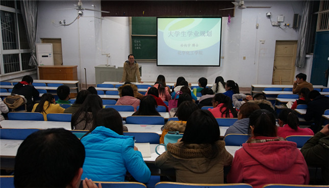 学生更好地完成学业,团总支书记冷向宇于教四梯一向近百名化院学生代表作了关于“大学生学业规划”的精彩报告。