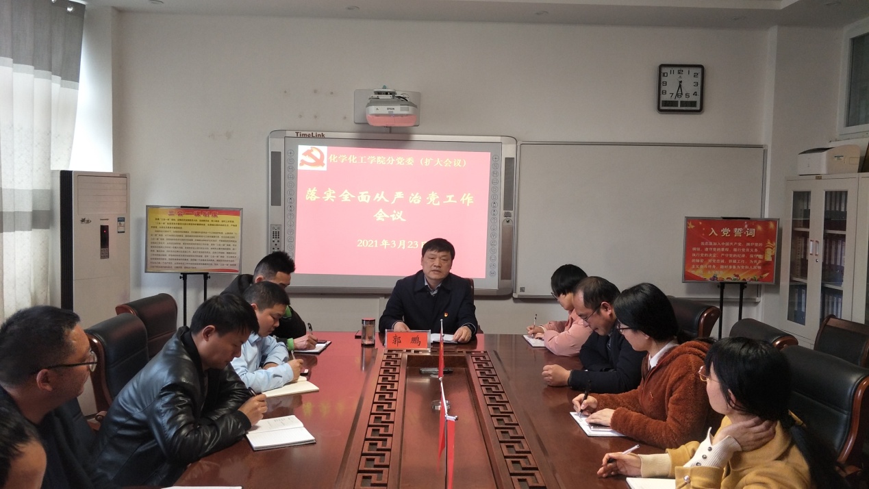 分党委如何落实全面从严治党工作责任制提出具体要求,他强调,学院分党委所属各党支部和全体党员干部教师要严格按照上级组织和校党委2021全面从严治党会议安排,并从“主动对标思考、谋划研究布置、加强督促检查、抓好作风建设、强化纪律建设、加大教育力度、配合校内巡察、加强内控建设、当好廉洁表率”等方面作了具体安排,重点强调建党100周年庆典、党史学习教育活动方案,动员分党委所属各基层支部、全体党员要带头宣传动员,精心组织,积极参与,严格党内政治纪律政治规矩,严肃党内政治生活,严抓基层组织建设,严格党员教育管理服务,以实际行动和优异成效推动学院全面从严治党工作,切实保障学院各项工作高质量发展。