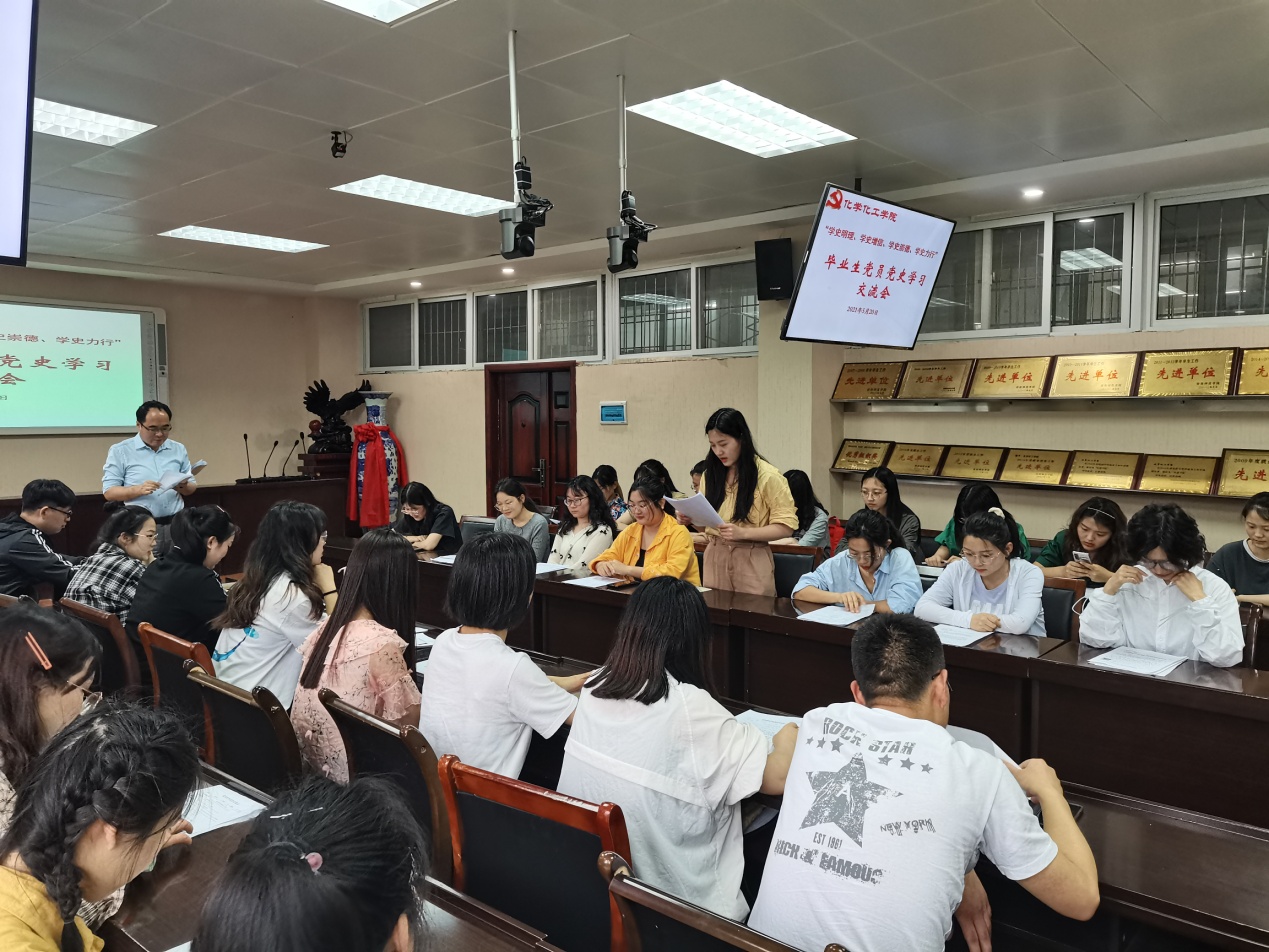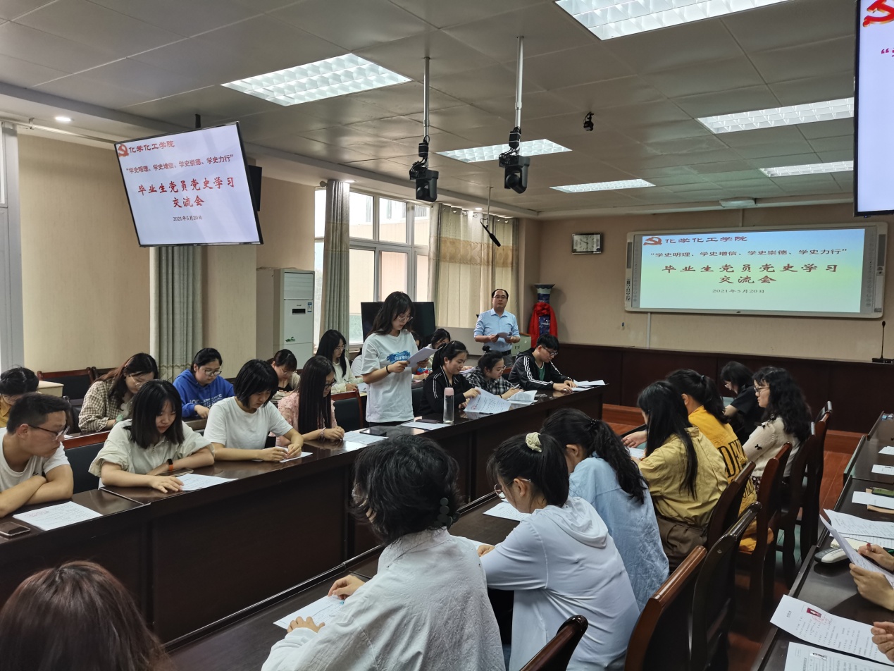2021届毕业生党员在实验楼举行“学史明理、学史增信、学史崇德、学史力行”党史学习交流会,交流学习《中国共产党简史》心得体会。学习交流会由分党委专职组织员冷向宇主持。