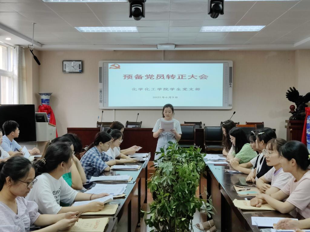 为进一步扩大党员队伍,严格履行党章规定的预备党员转正手续,2021年6月9日,161sex 学生第四支部在实验楼407室召开预备党员转正大会,学生第四支部11名正式党员和17名预备党员参加本次大会,其中有3名预备党员转为正式党员。
