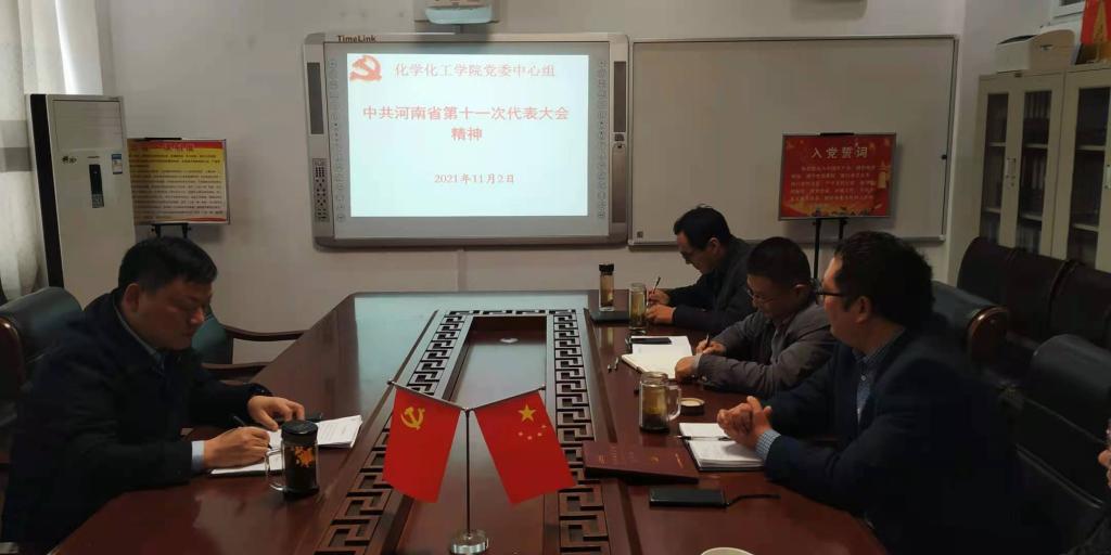 11月2日,161sex 党委理论学习中心组在化学楼313“党员之家”召开专题会议,传达学习贯彻落实中国共产党河南省第十一次代表大会精神。学院党委理论学习中心组成员及党支部书记代表一起参加了会议。党委书记郭鹏主持会议。