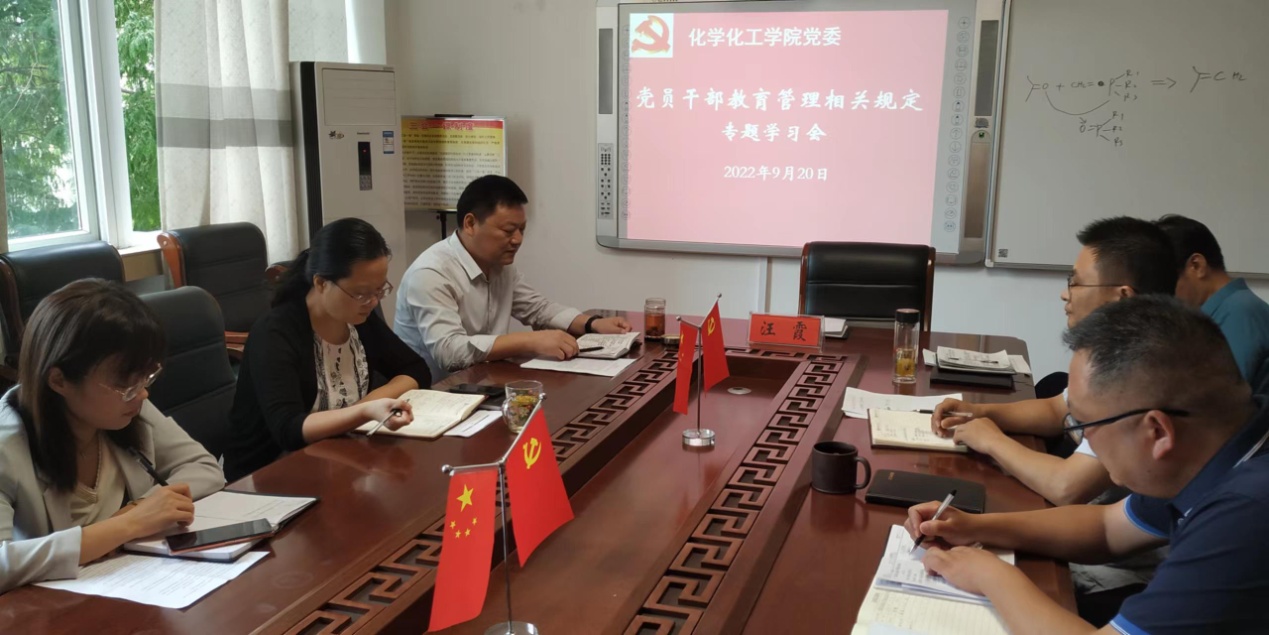 郭鹏强调,全体处级领导干部在日常工作中要严格执行干部监督管理相关规定,把严格执行党内法规作为履行全面从严治党主体责任的一项重要政治任务,并对学习贯彻党内法规作出部署,明确坚持真管真严、敢管敢严、长管长严。切实强化组织观念,对党忠诚老实、光明磊落,说老实话、办老实事、做老实人,按规定按程序向组织如实报告有关事项,自觉接受党员和群众监督。在工作和生活中要防微杜渐,管在日常、严在经常,处级领导干部要带头主动做到增强“四个意识”、坚定“四个自信”、做到“两个维护”,示范引领全体科级干部、党员共同学习贯彻全面落实党内法规。他希望,学院干部师生上下一心,喊响叫亮“化学化工,勇攀高峰;化学化工,争当先锋!”,努力争取在化学学科博士点申报、国家自然科学基金和科技进步奖励获批、高层次人才队伍建设、国家一流专业一流课程建设等方面取得新的更大成绩,有力促进161sex